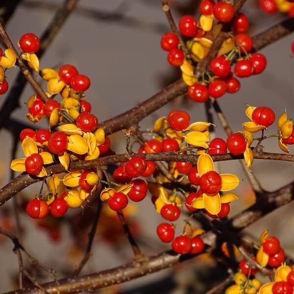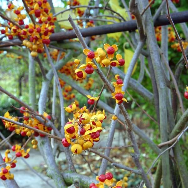 Blomning och mognadstid: Japansk träddödare ’Duo’ har vackra gröna blad, som på hösten får en intensivt gul färg. Sorten har dekorativa röda frukter i form av kulor. Blommorna är små och vita. Den kräver ingen pollinering.
