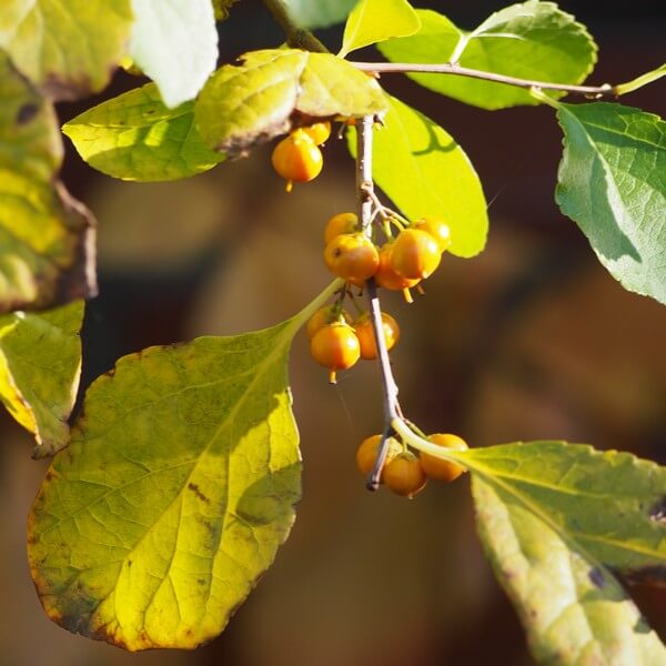 De dekorativa gulröda frukterna (endast på honplantor) pryder växten under lång tid, från oktober till december. Bladen är vackert gröna och får en intensiv gul höstfärg.