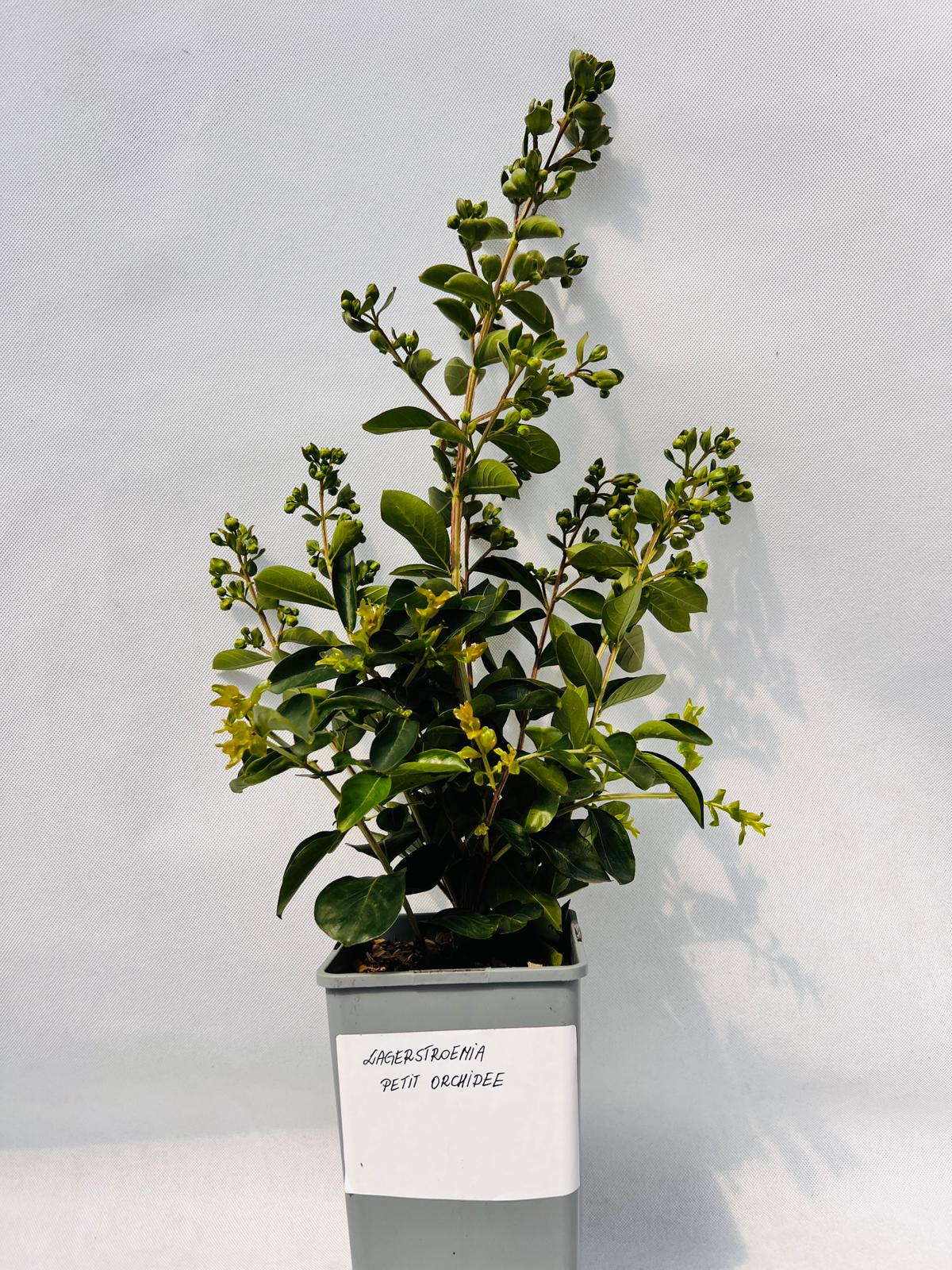 Lagerströmia indica ’Petite Orchidee’ – en vacker sort med lägre växtsätt som under de första åren når en höjd på ca 0,8–1 m, vilket gör den idealisk både för odling i rabatt och i kruka. Blommorna har en underbar lavendelrosa färg och bildar vackra blomklasar.