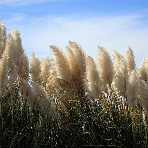 Pampasgräs ’Pumila’ är perfekt solitär eller effektfull accent i rabatter – ett prydnadsgräs som tillför höjd, struktur och dramatik i trädgården.